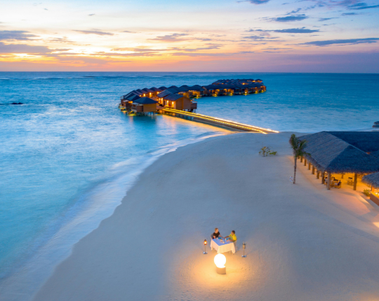 Stay in iconic overwater villas offering luxury, privacy, and stunning ocean views in Maldivesโ pristine waters.