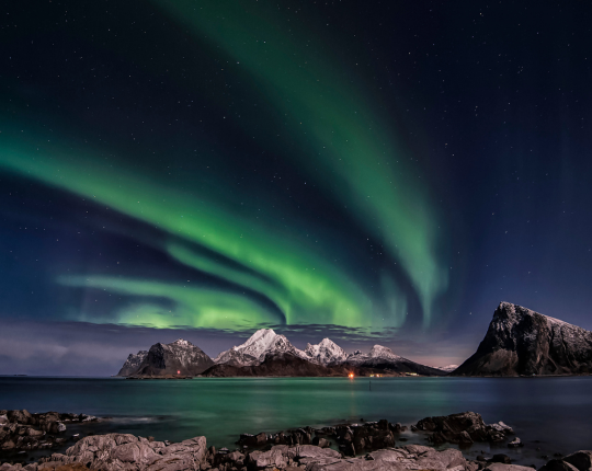 Visit Tromsø or the Lofoten Islands during winter for a magical experience of the Aurora Borealis.